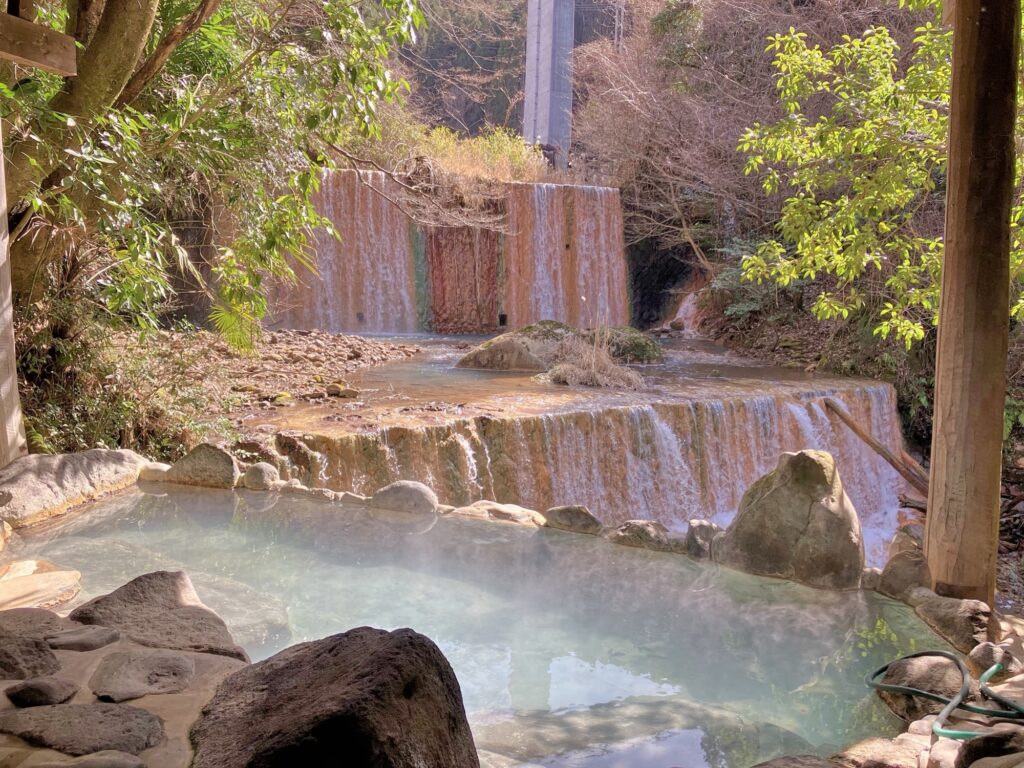 男湯露天はお湯がブルー色で